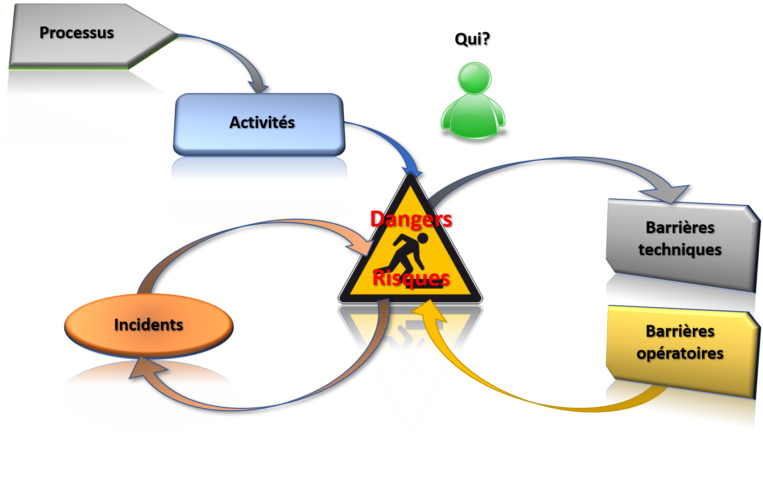 Essentiellement, la gestion du risque est la combinaison de trois étapes: l'identification des risques, l'introduction de contrôles des risques (barrières) et une surveillance constante.